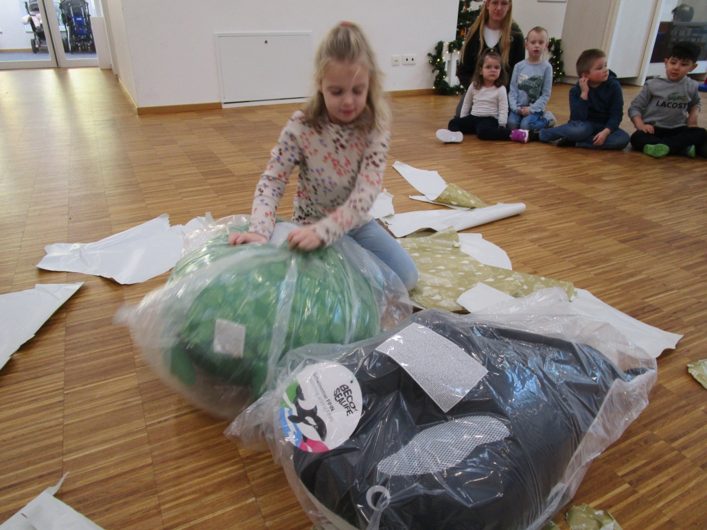 Auch dieses Jahr kam der Weihnachtsmann und legte unseren Kindern ein Geschenk unter den Baum. Es gab ein großes für alle Kinder zusammen und viele kleine für die Gruppen.