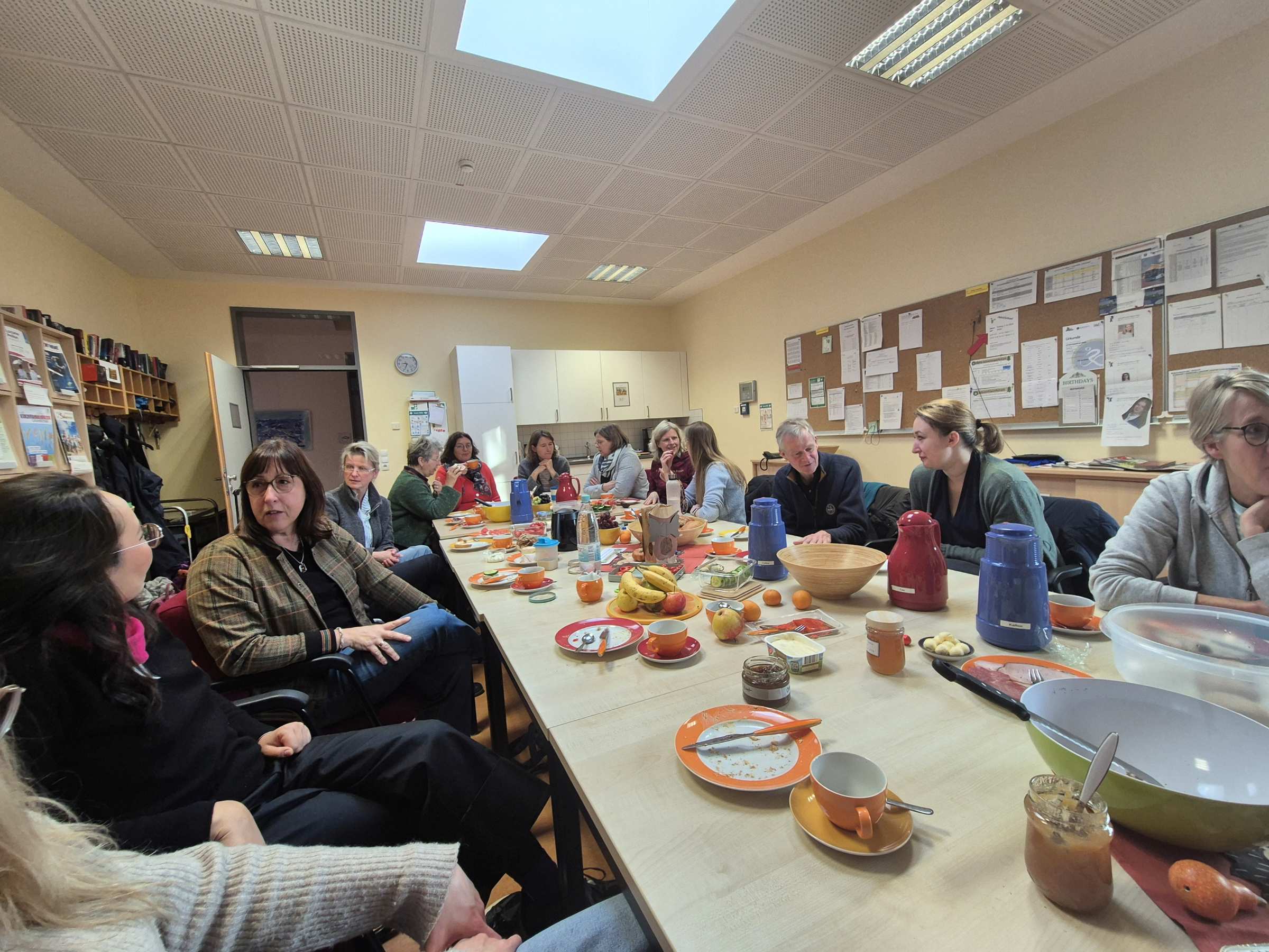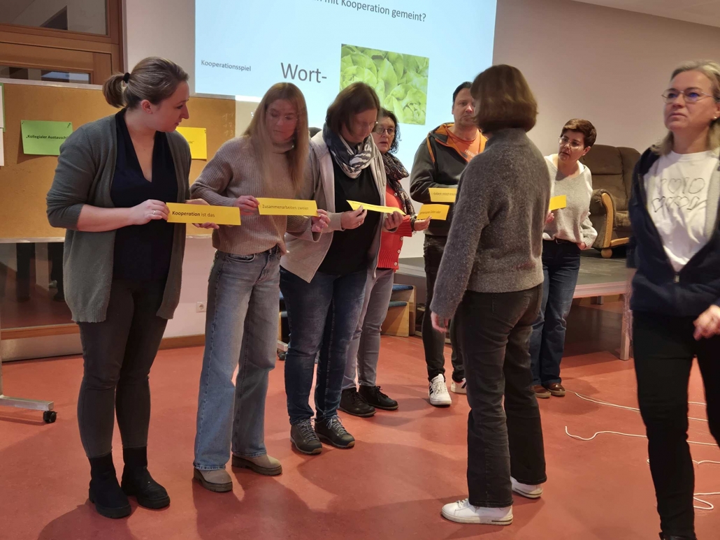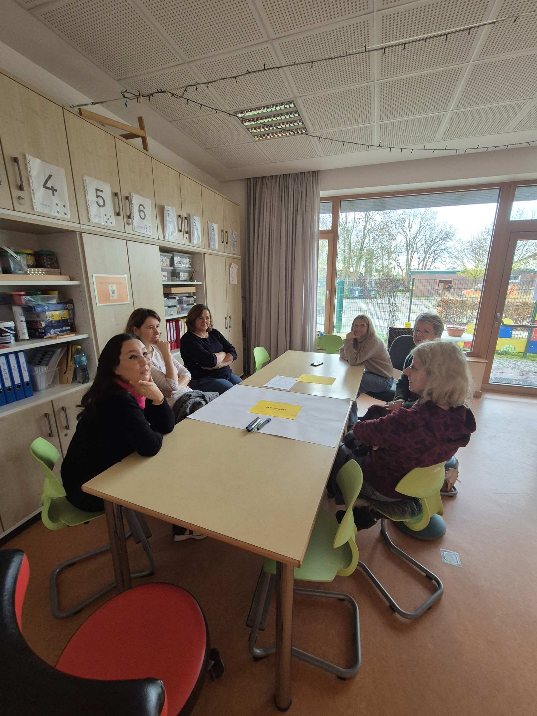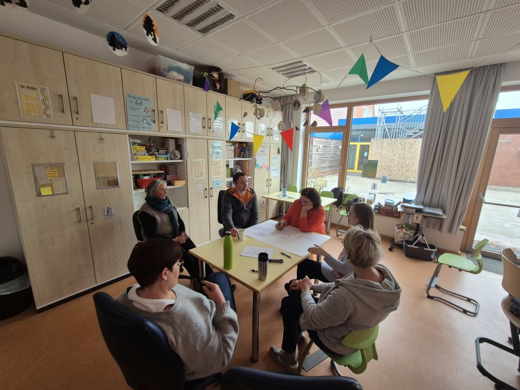 Jedes Jahr im November treffen sich die KollegInnen der Schulgemeinschaft Bingum, also der Schule am Deich und der Grundschule Bingum, zu einer gemeinsamen Fortbildung. Dieses Jahr ging es um unsere Kooperation. Annette Moll hatte den Tag toll vorbereitet, so dass wir neben teambildenden Spielen intensiv in Gruppen zu der Frage gearbeitet haben, wie wir die Kooperation in Bingum weiter gestalten wollen. Dabei sind viele gute Ideen entstanden, es fand ein toller Austausch statt und erste Aktionen wurden geplant. Ein gutes Frühstück durfte dabei natürlich auch nicht fehlen. Der Vormittag verging schnell und wir blicken mit einem guten Gefühl in die Zukunft unserer Schulgemeinschaft!